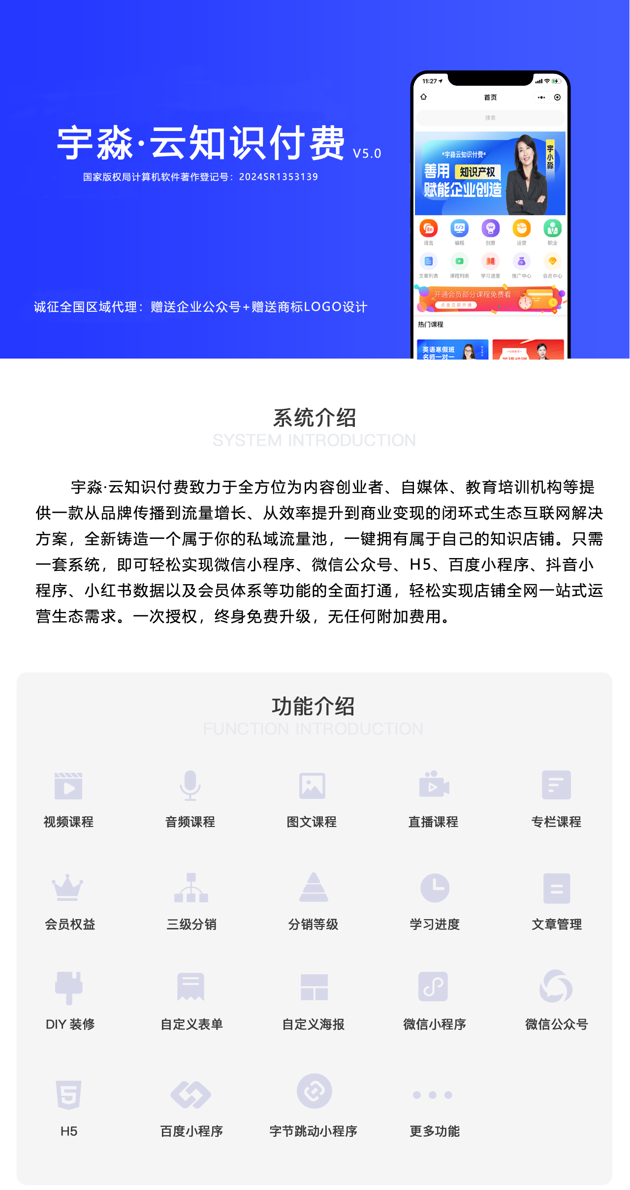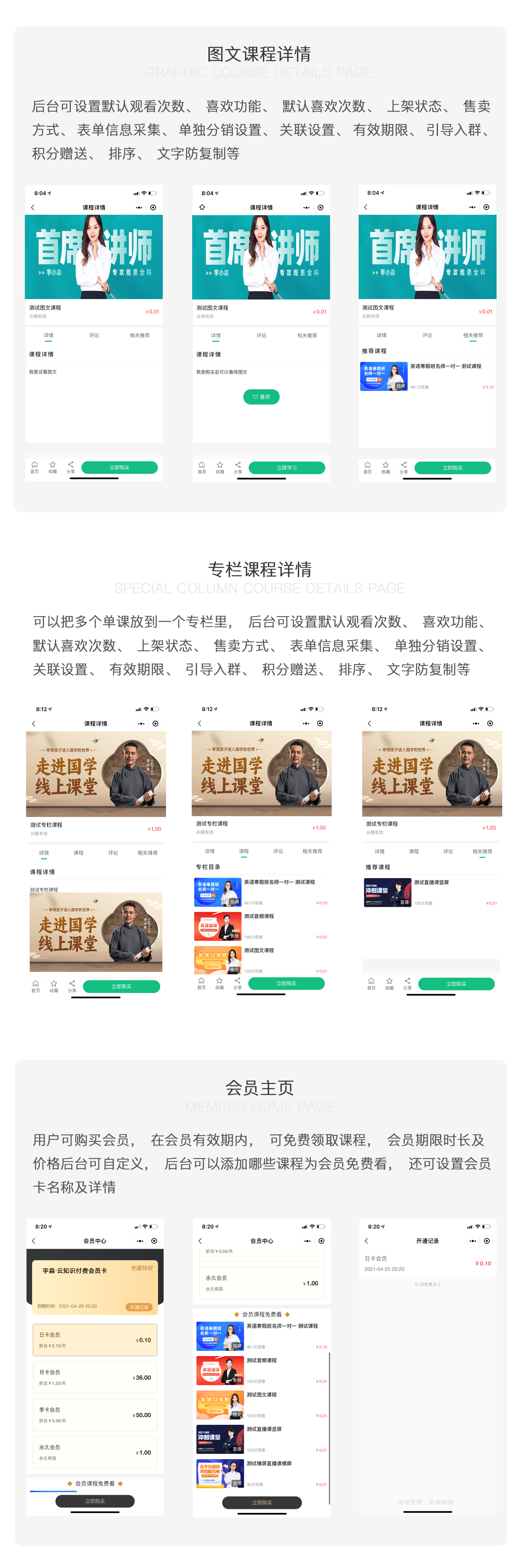宇淼云知識(shí)付費(fèi)管理系統(tǒng)功能介紹