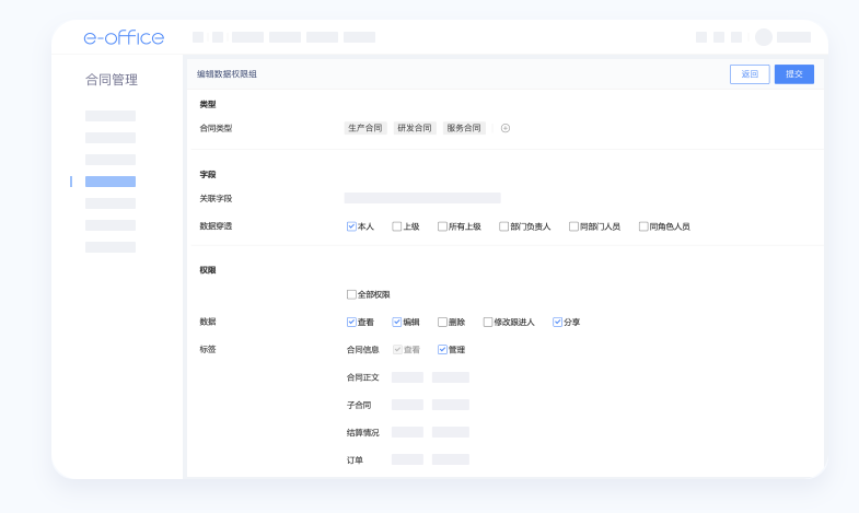 對(duì)合同進(jìn)行分類管理,按照合同類型細(xì)化數(shù)據(jù)/監(jiān)控權(quán)限