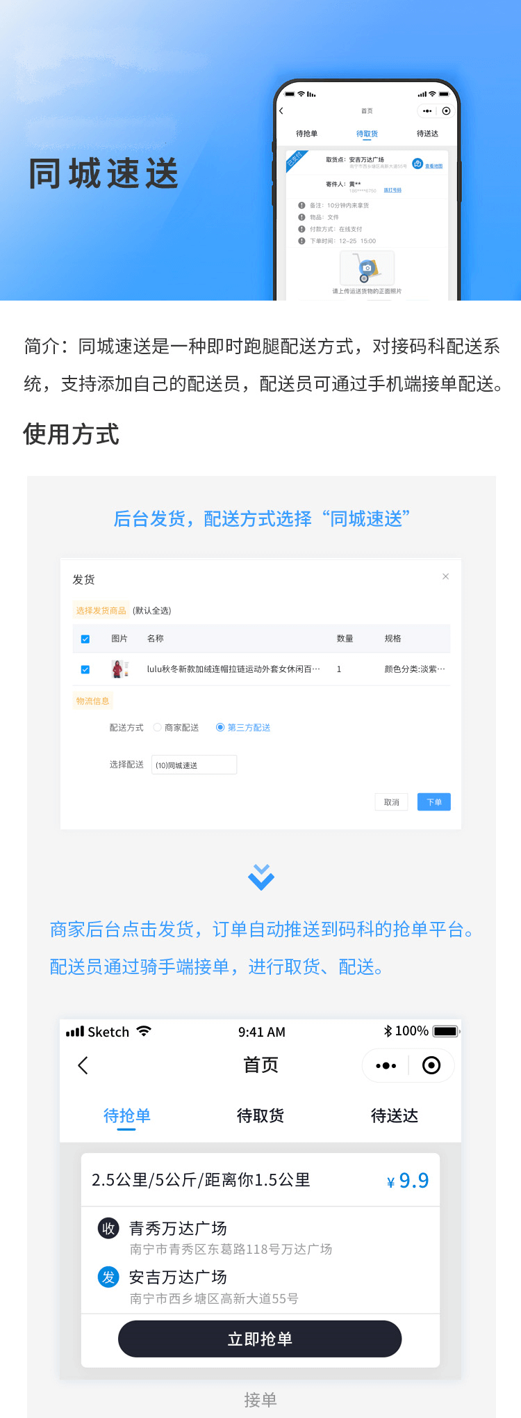 通過同城速送插件,可以對(duì)接碼科配送系統(tǒng)。